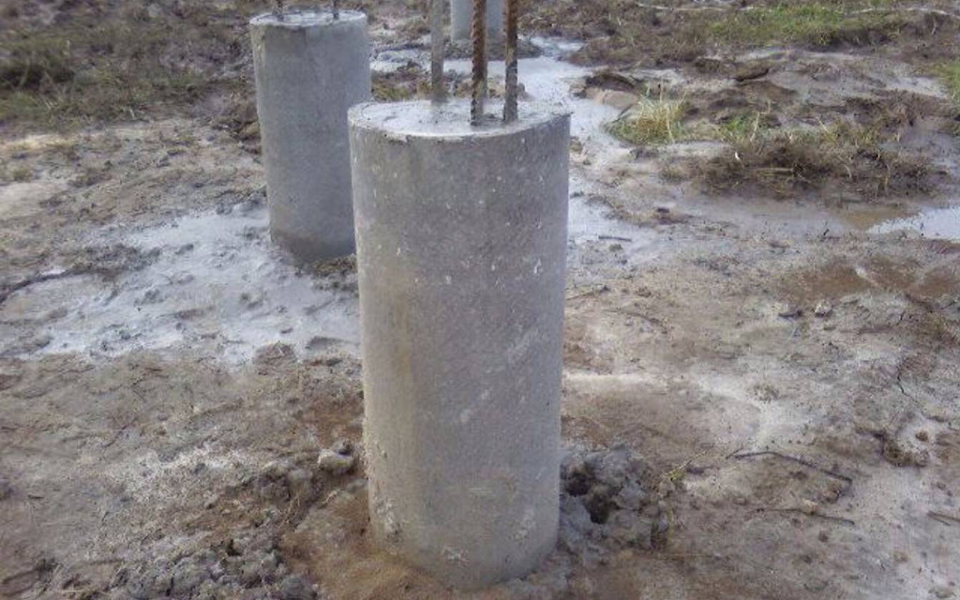 Прочность буронабивной стойки, изготовленной в полевых условиях немного ниже, чем у конструкции, прошедшей полный цикл заводской обработки. Тем не менее, ее с запасом хватит для возведения кирпичного дома.