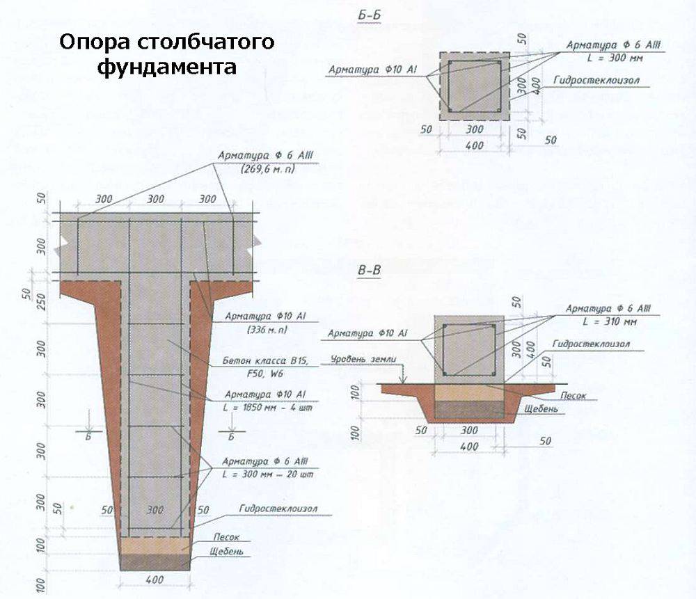 Фундаментное основание столбчатого типа представляет собой бетонную или металлическую раму (ростверк), опирающуюся на вертикальные столбы, заглубленные в грунт на определенную глубину.