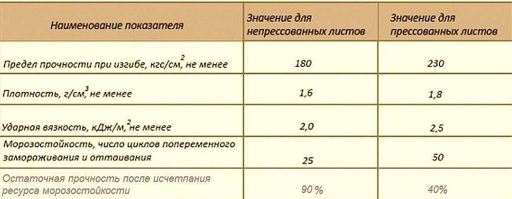 Морозостойкость ЛНП — 25 циклов, ЛПЛ — 50. Шиферная плита с асбоцементными волокнами отличается теплопроводностью 0,35 Вт/м*К.