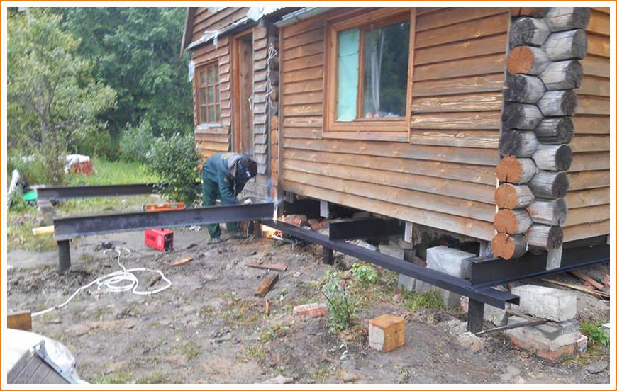 Конструкция базиса очищается от налипшей почвы, его стенки выравниваются и очищаются. Если деревянная постройка имеет столбчатое основание, понадобится вырыть яму около каждого столба, чтобы оценить прочность каждой опоры. Для увеличения безопасности, рекомендуется установить специальные домкраты под каждый угол постройки.