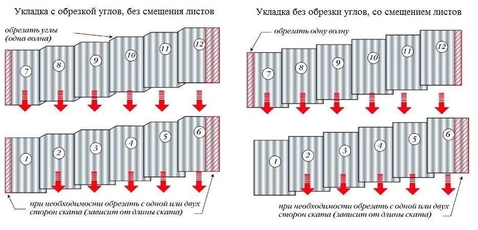 5. Правильный нахлест шиферных листов выглядит следующим образом: крайняя волна у одного листа должна накрываться последней волной последующего.