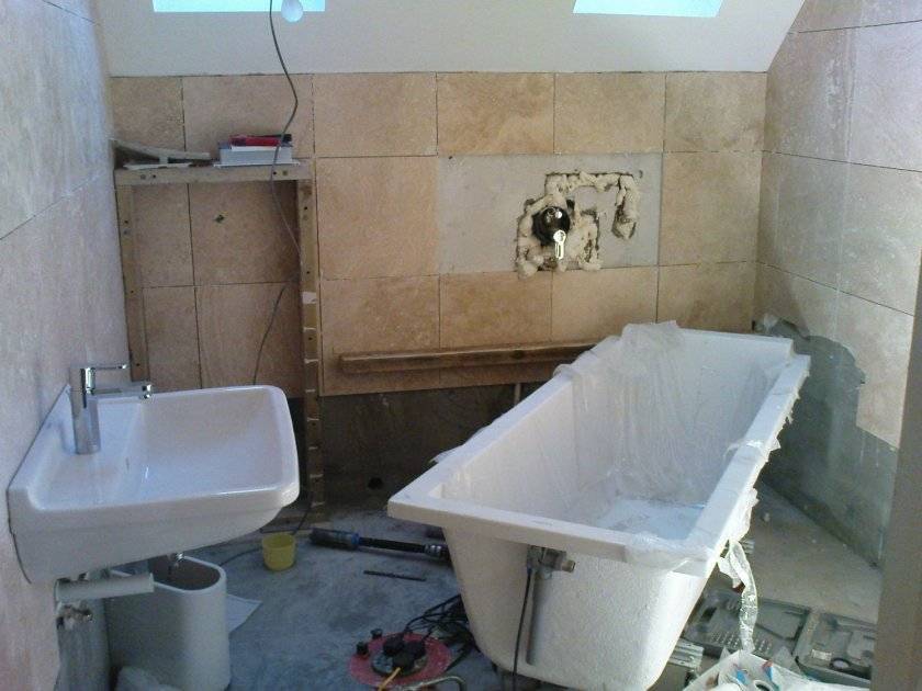 Половина работ по ремонту ванной комнаты своими руками закончена.