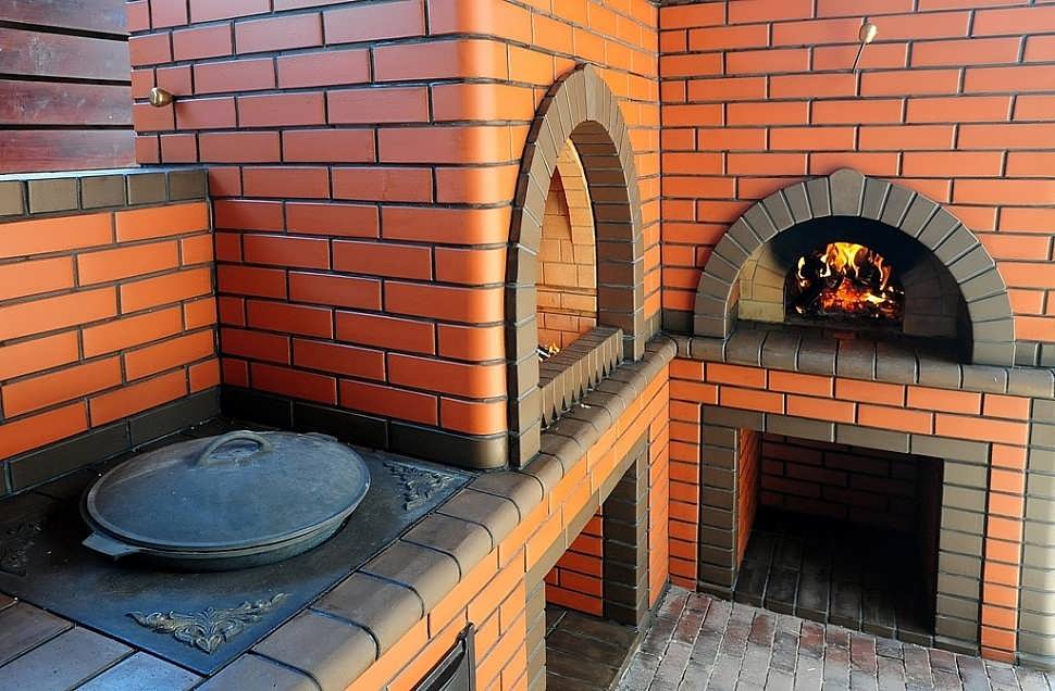 И составные части, и кладка напоминают русскую печь с камином и лежанкой. Отказ от последней выгоден сокращением габаритов и плитой, на которую поместится большой казан. Порядовка такая: