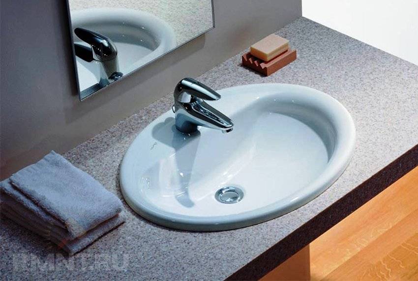 накладная раковина. Данный тип раковины предполагает наличие столешницы, о которой мы говорили выше