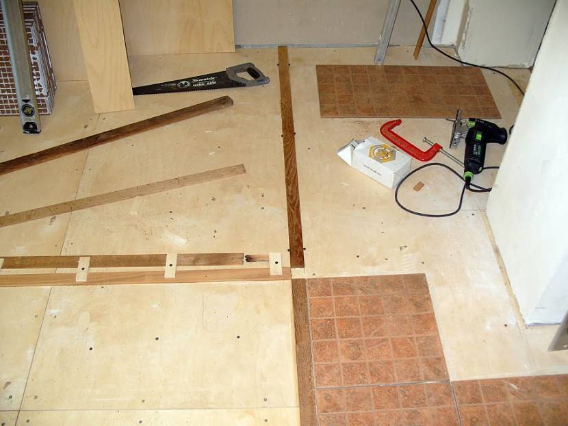 Есть еще один вариант, кладка плитки на фанерные листы, ДСП.