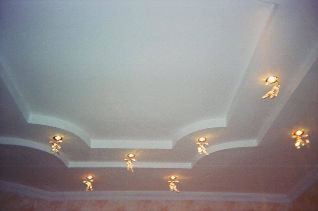 По внешнему виду конструкции из гипсокартона ничем не уступают натяжным потолкам. Вы можете создать конструкции из одного или нескольких уровней. С рисунком или без, в любом цвете.