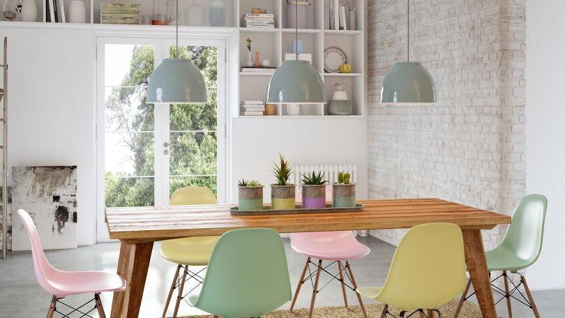Мягкая сероватая отделка с терракотовыми акцентами, может создать довольно неожиданную цветовую палитру. Она может служить тихим акцентом в комнате или может быть центральным элементом, вокруг которого украшается все пространство. Истинный скандинавский дизайн! Окрашенные шведские стулья также могут дополнять многие интерьеры. Они также прекрасно сочетаются с более традиционным стилем.