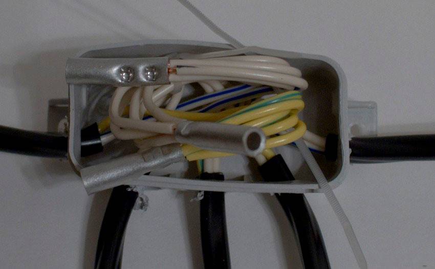 - После того, как работы по соединению проводов будут завершены, кабели необходимо заизолировать и поместить в специальные распределительные коробки.