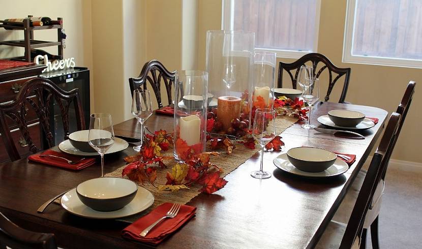 Если кухонный стол сделан из стекла; его не прячут под скатерть, и подбирают негромоздкий декор. К месту будут стеклянные вазы, изящные подсвечники; если композиции, то небольшие. Вместо скатерти подойдут тканевые или плетёные салфетки, коврики, гармонирующие с темой оформления.