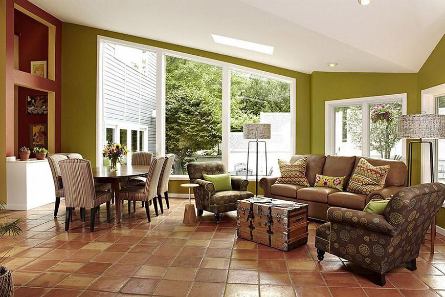 Хотя может показаться, что терракотовый пол – редкость, на самом деле существует множество плиток и керамогранита этого оттенка, доступных в большинстве магазинов. При выборе напольного покрытия имейте в виду следующее: для достижения наилучшего результата терракотовый цвет пола должен быть темнее стен, но не слишком темным.