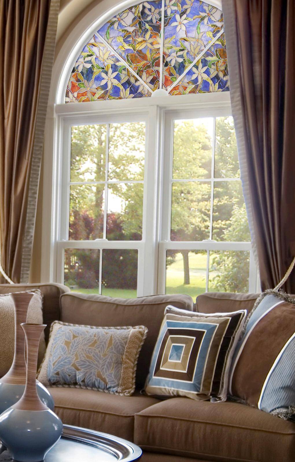 Если пленка будет размещена на энергосберегающем стеклопакете, она никак не нарушит его работу, поэтому можно смело устраивать витраж вне зависимости от того, какой тип стекол у вас установлен.