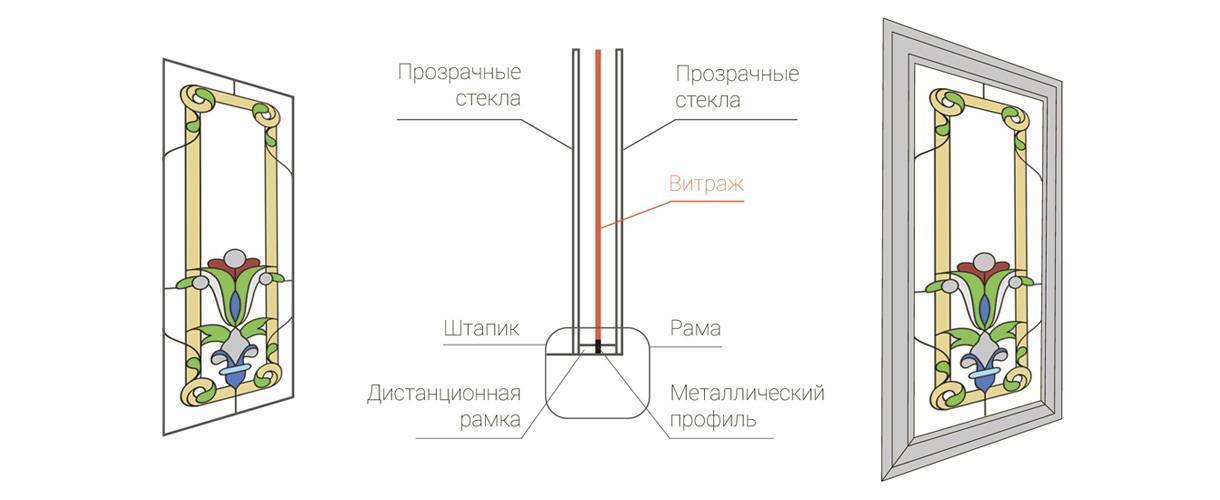 Совет: если у вас двойной стеклопакет, и вы хотите максимально защитить витражную пленку от внешних воздействий, можно разместить ее внутри стеклопакета