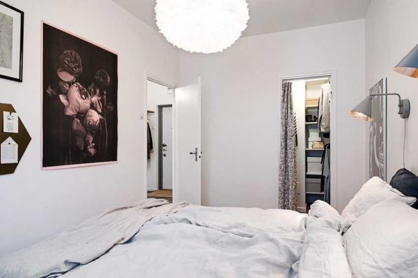 Даже небольшая спальня в скандинавском стиле может быть удобной и функциональной