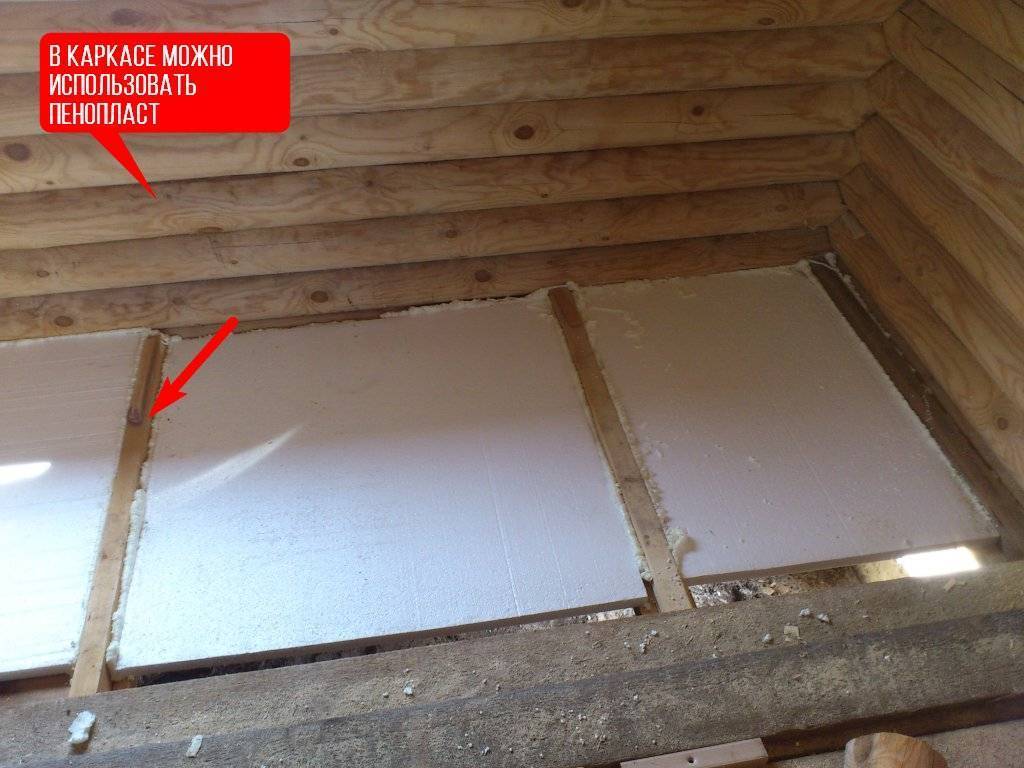 Расстояние между брусками должно быть меньше ширины утеплителя примерно на 5 мм. Это позволит пенополистиролу плотно войти на свое место, исключив какие-либо зазоры. Если предусматривается укладка нескольких слоев, то швы последующего слоя должны накладываться на швы предыдущего.