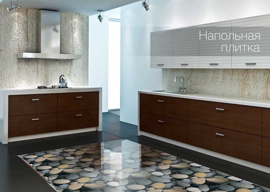 В плане прочности керамическая плитка на кухне уступает остальным вариантом (кварцвинил и керамогранит), но при этом существенно выигрывает у них по своей стоимости и по своим декоративным свойствам.