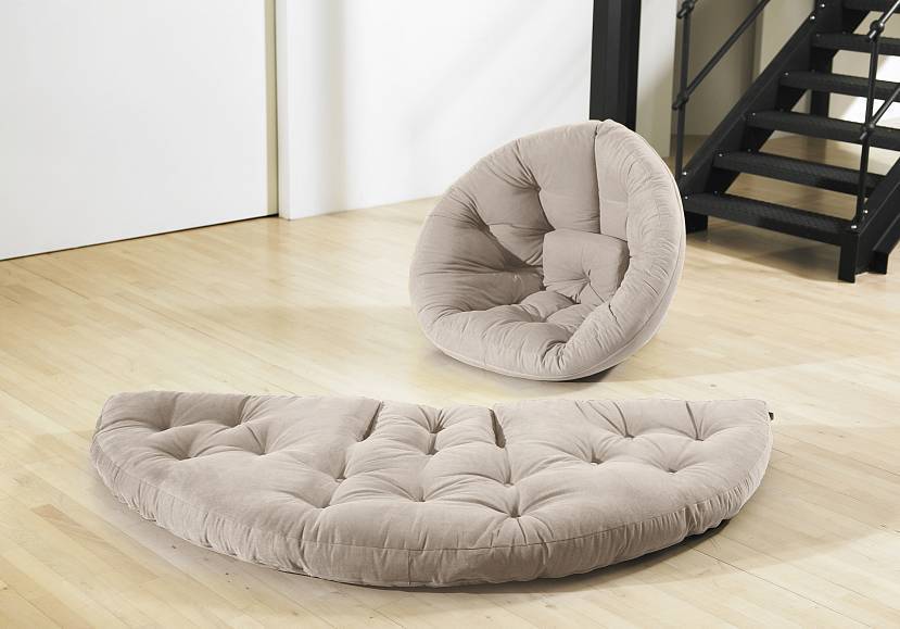 - немассивные низкие кресла-кровати (трансформеры), которые легко раскладываются и используются как мягкие шезлонги;
