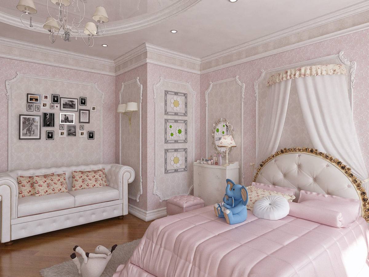 Останется декорировать стены. Вот здесь-то и начнёт «работать Барокко»: арт-объекты в лёгких посеребрённых рамках, деревянные рельефы птиц, герб «семьи», зеркало в недорогом багете с резьбой, подростковая мебель с текстильными вставками и т. д. Ведь детская – это не только функциональное пространство, а целый мир, призванный воспитывать вкус.