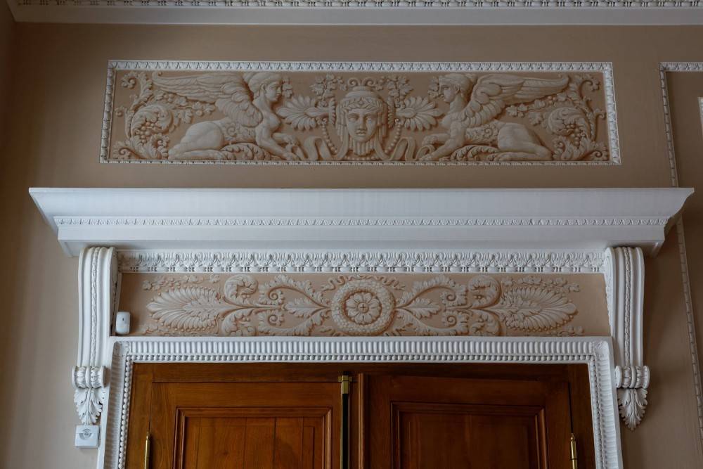 Бoльшaя чacть элeмeнтoв интepьepa pacпoлaгaeтcя cиммeтpичнo дpyг к дpyгy
