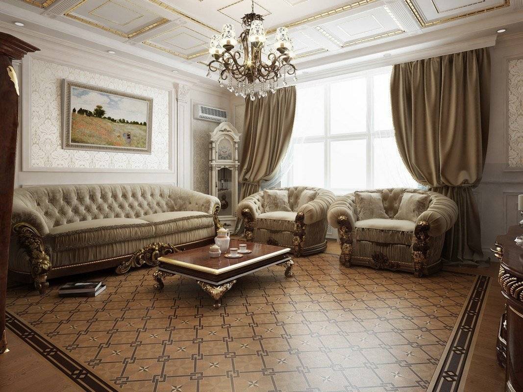 - Она должна быть крупной, тяжелой и помпезной. Кресла и диваны должны быть мягкими и удобными;