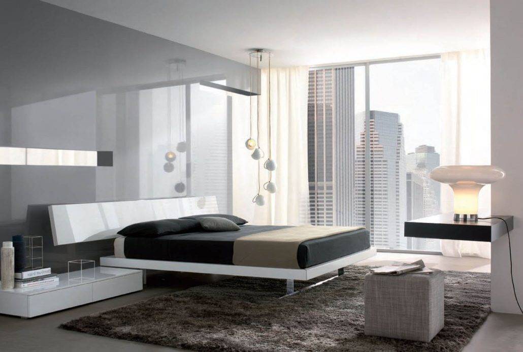 Спальня. Она выглядит не только функционально, но и изысканно, благодаря спокойным цветам стен и многоуровневому освещению с регулировкой яркости и оттенка ламп. Пол украшает неброский ковролин или ковер с высоким ворсом, на окнах — горизонтальные жалюзи или темные шторы. Уютными деталями служат абстрактные панно и монохромные фото на стенах, а также более насыщенные оттенки декора.