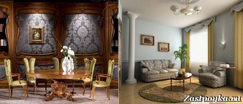 Суть стиля модерн – противопоставление классическим интерьерам того времени. Прямые, четкие линии мебели и пространства много веков не выходили из моды – модерн же сделал главными в интерьере извилистые, скрывающие переход от одного элемента обстановки к другому линии. Характерная особенность стиля – округлость комнат, плавность (никаких четко выраженных углов), «гибкость» и пластичность мебели.