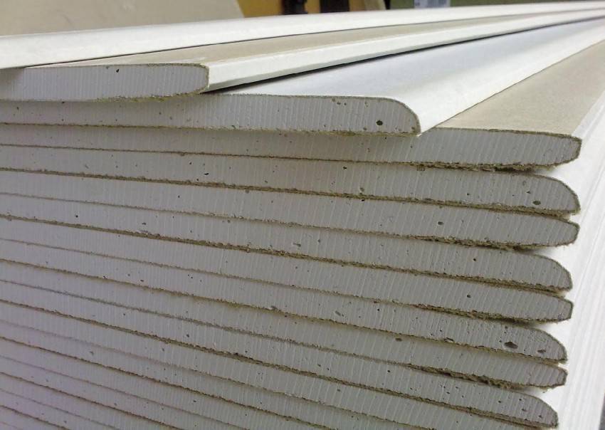 Гипс в плоских белых листах, оклеенный с обеих сторон несколькими слоями плотным монтажным картоном, и есть гипсокартон. Плотность гипсового камня около 1300 кг/м3, т.е. в полтора раза больше, чем у дерева. Стандартная толщина гипсокартонного листа (ГКЛ) – 16 мм. Если влажность в вашем помещении велика, то можно брать гипсокартон марки ГКЛВ.