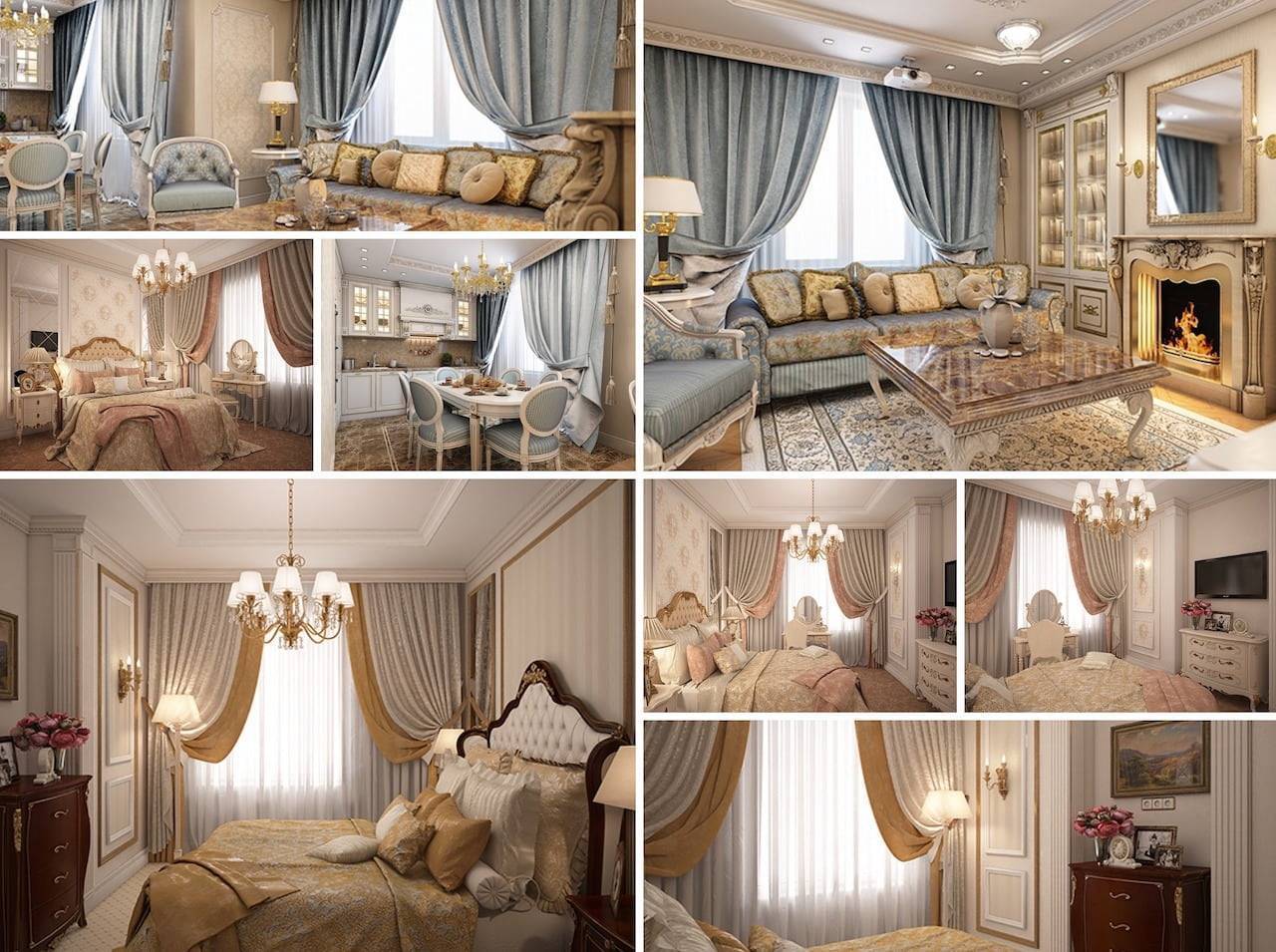 - Императорские и “рукав епископа” – представляют собой оформленные в разнообразные пышные сборки и воланы варианты, и используются для придания помещению помпезности.