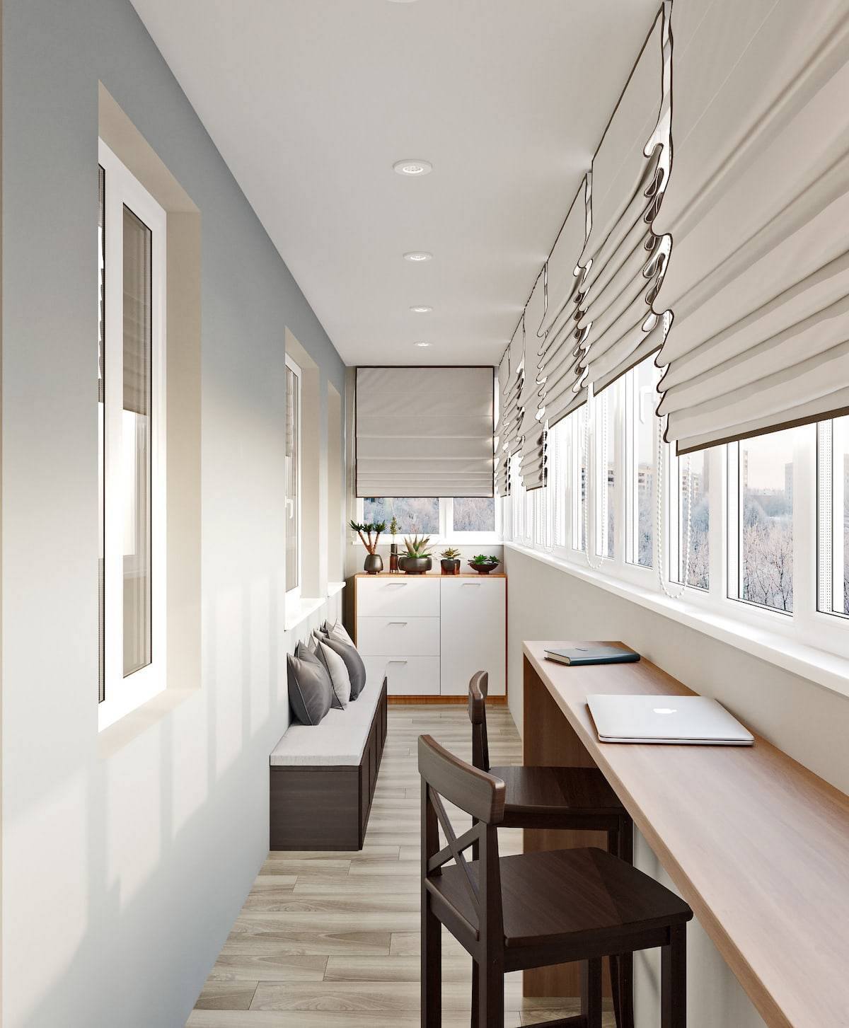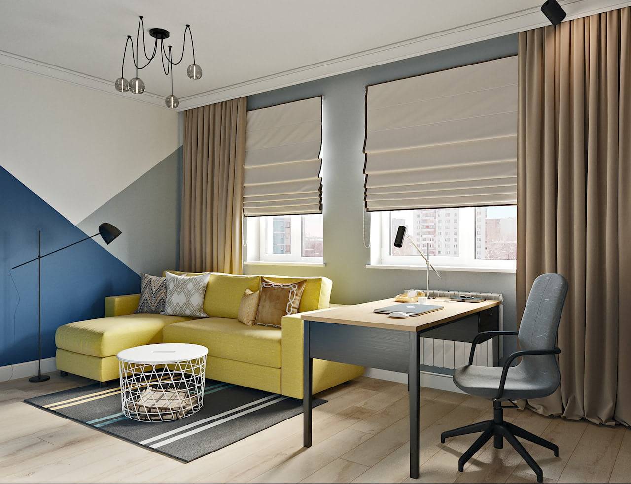 А вот для оформления окна в рабочем кабинете лучше подойдут холодные оттенки (синие или серые), что создаст строгую обстановку, располагающую к умственной работе.