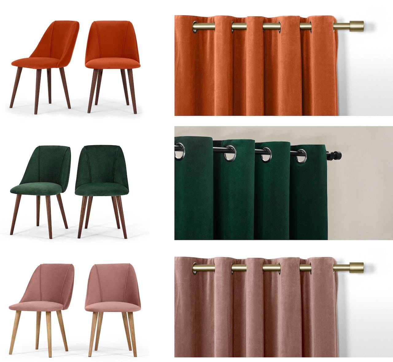 Иногда практикуется также подбор цвета ткани под мебельный гарнитур или напольное покрытие. Холодные тона делают помещение визуально просторнее, тёплые же уменьшают, но создают атмосферу камерности и уюта.