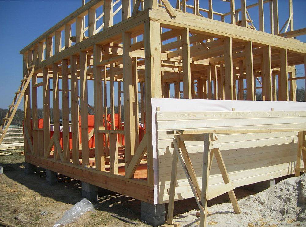Основой любого каркасного строения (как видно по названию) является каркас. Его изготовляют из бруса и доски. Количество лесоматериала и размеры отдельных частей полностью зависят от выбранной технологии строительства и проекта дома. Таким образом, для экономии на этом этапе следует тщательно выбирать эргономичный проект и способ возведения дома.