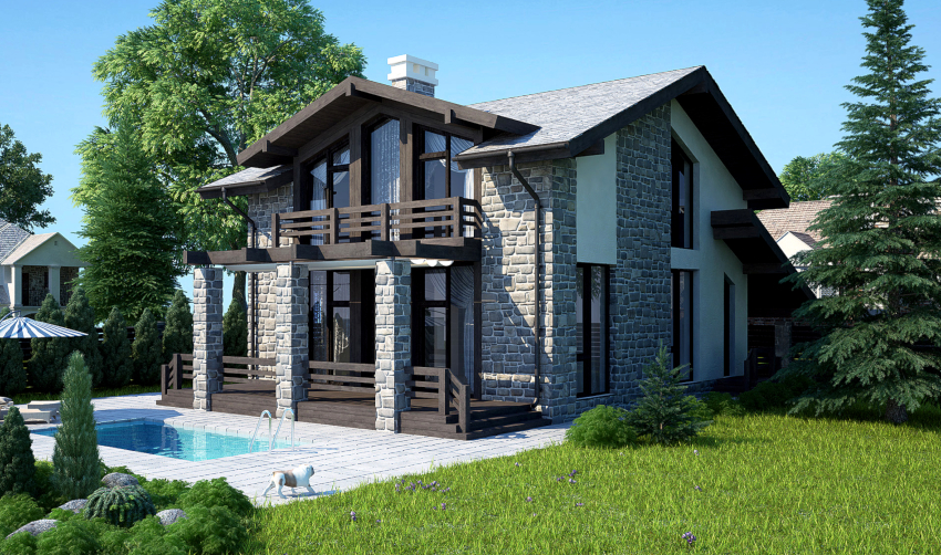 Еще один распространенный материал, который используется при строительстве коттеджей, – камень. Этот натуральный материал имеет довольно высокую стоимость, однако существует его искусственный аналог, цена которого гораздо ниже. При этом технические характеристики искусственного камня ничем не хуже. Здания, возведенные из этого материала, отличаются презентабельным внешним видом, отлично сохраняют тепло и имеют длительный срок службы.