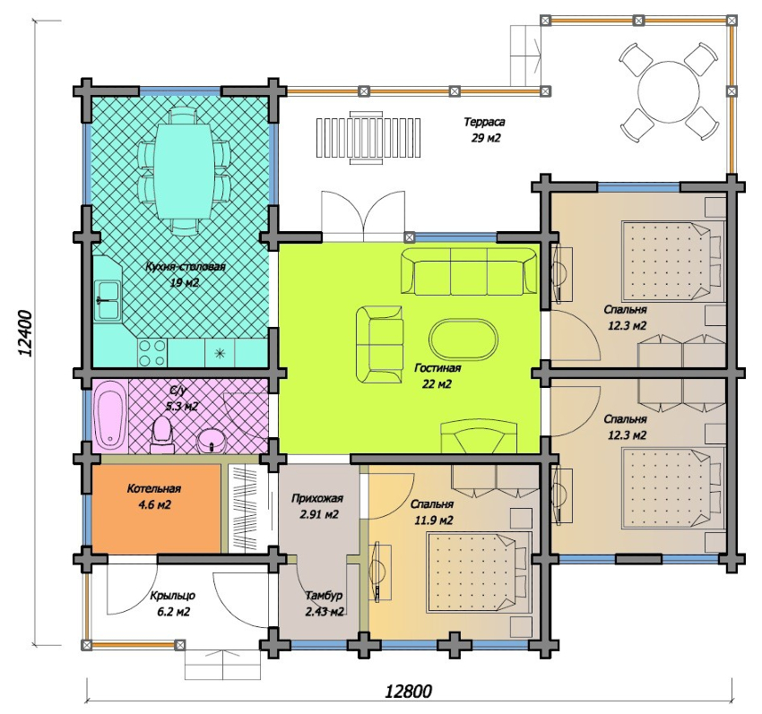 Типовые проект предполагают адаптацию. Например, переделку планировки, корректировку отделки фасада, переустройство террасы. Но сразу оговоримся: менять габариты дома и переделывать несущие конструкции вы вряд ли сможете.