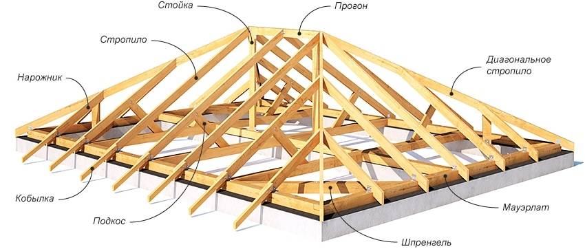 Чтобы правильно спроектировать шатровую крышу, нужно знать все основные элементы её конструкции