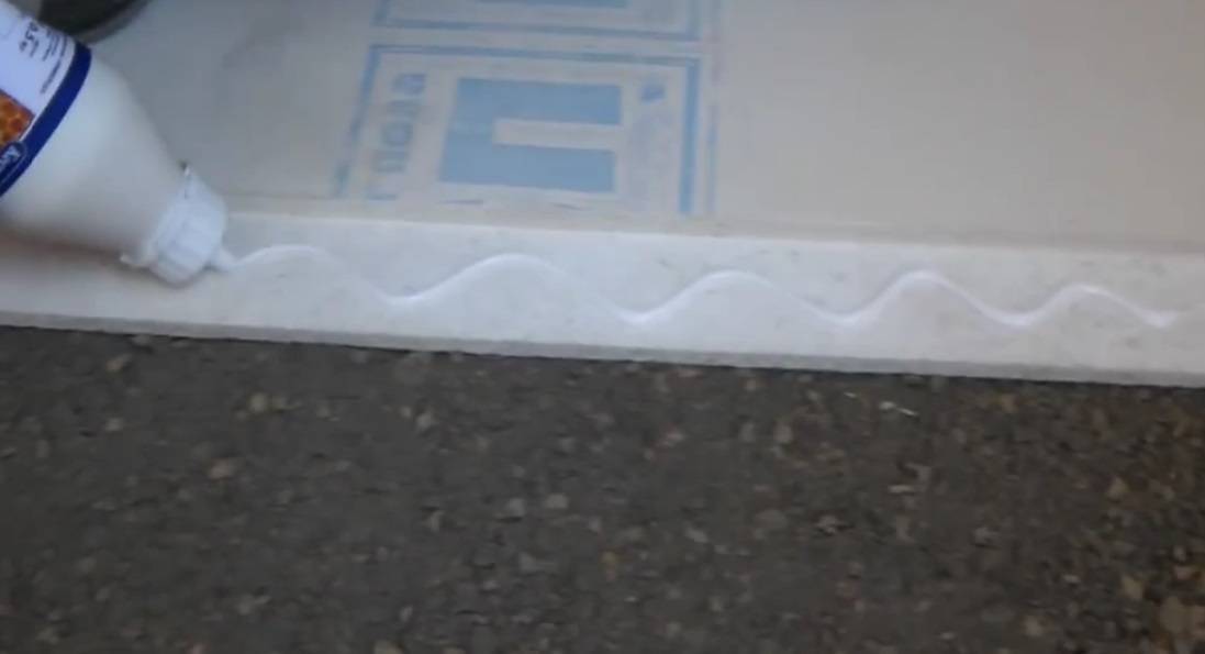- Приклеивание демпферной ленты в месте касания дсп и стены. Демпферная (кромочная) лента проклеивается по всему периметру помещения, в котором планируется сухая стяжка пола своими руками. Такая лента из вспененного винила на самоклеющейся основе, предотвращает появление разнообразных скрипов возникающих в результате контакта листов ДСП или ГВЛ со стеной.