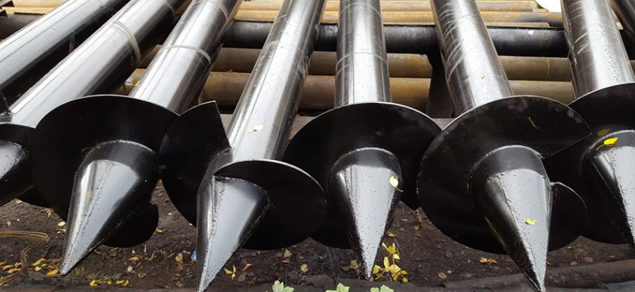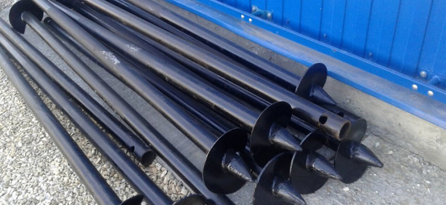 Винтовые. Имеют вид стальной трубы с винтовыми лопастями внизу конструкции. Эти столбы очень крепкие, вытащить их невозможно. При установке винтовых свай монтировать их надо строго вертикально по отношению к поверхности