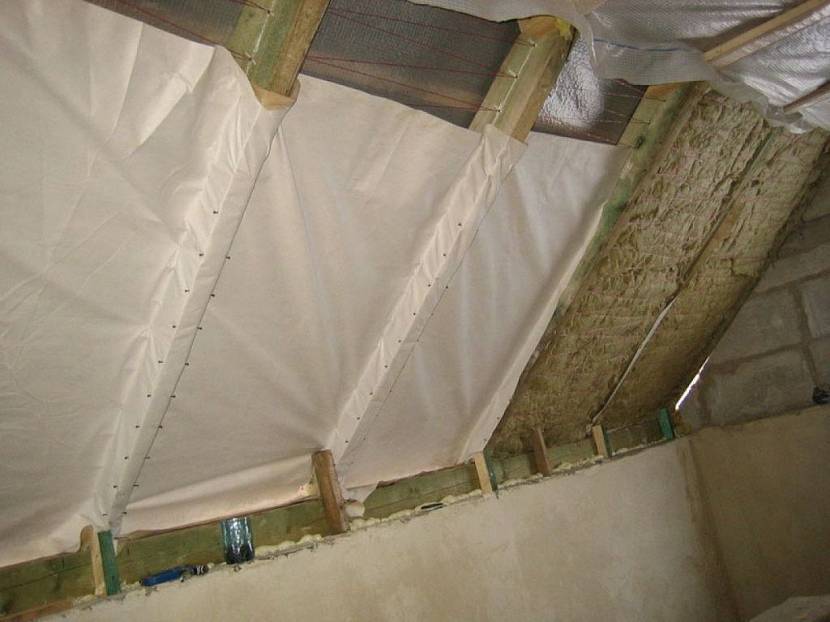 При выборе ваты для утепления мансарды нужно предусмотреть, чтобы в неё ни в коем случае не попала влага. На балки клеится мембрана, способная дышать в сторону улицы и не пропускать влагу в обратном направлении. Под мембраной монтируется вата, защищаемая снизу паробарьером, дышащей плёнкой в оба направления. При таком способе утепления вата будет защищена от попадания воду через кровлю и будет отдавать накапливаемые испарения из дома наружу.