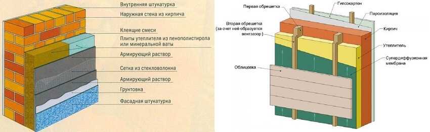 При наличии внутреннего слоя утеплителя требуется предупредить появление конденсата. Для этого потребуется пароизоляция. При наличии наружних слоев теплоизоляции потребуется оштукатуривание поверхности.