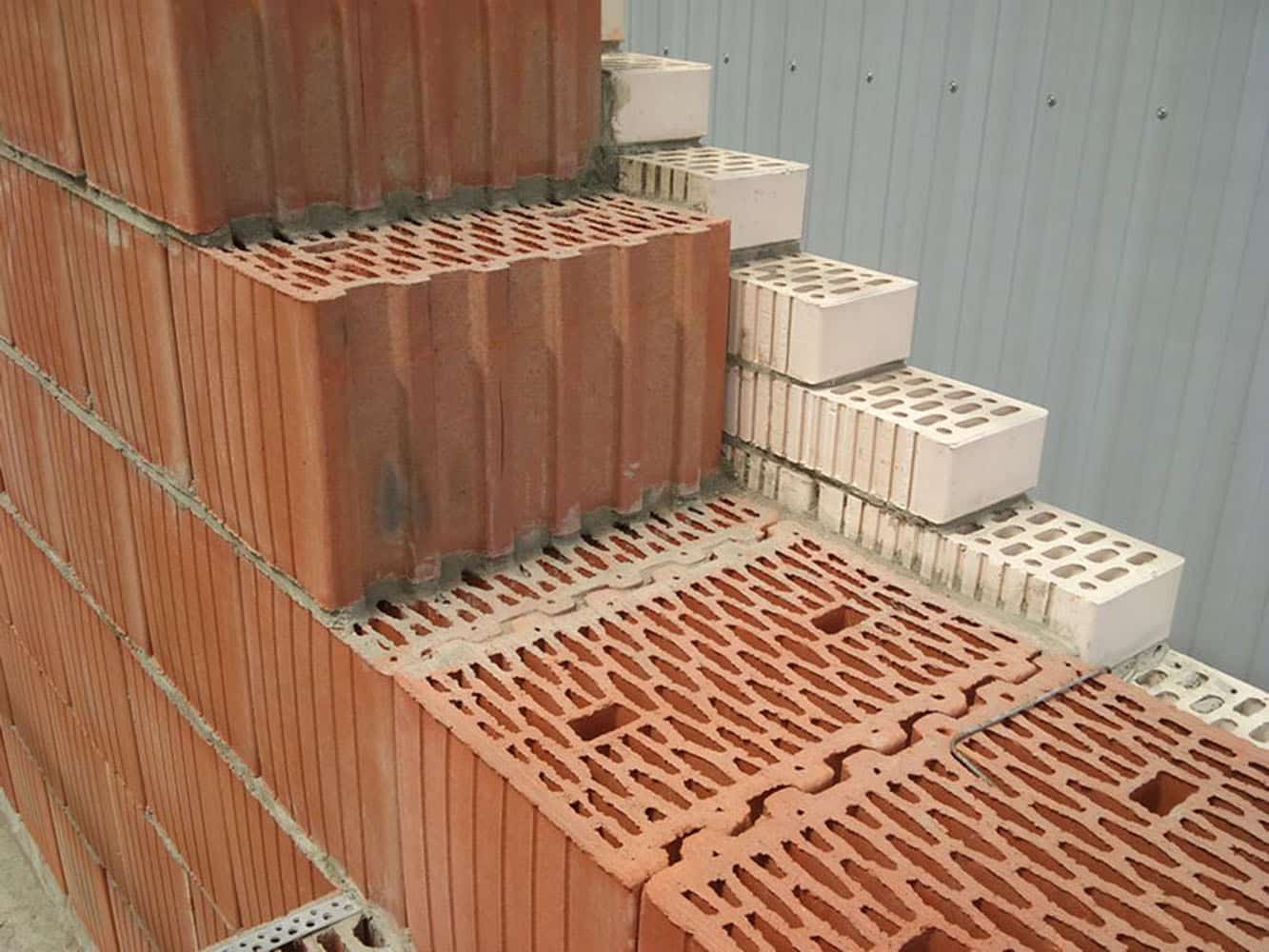 Наибольшая нагрузка требует армирования перегородок, простенков и опорных столбов с помощью железной проволочной сети поперечником 3-6 мм в высоту через каждый 3 или 5 ряд. Перегородки обычно выкладывают в полкирпича 12 см шириной. Размер сечений столбов должен составлять 25 см на 38 см и больше. Иногда толщина перегородок может составлять 6,5 см, а метод называется «кирпич на ребро». Если длина перегородок больше 1,5 м, которые сделаны данным способом, конструкцию перегородок следует армировать прутками через каждые 2 ряда.