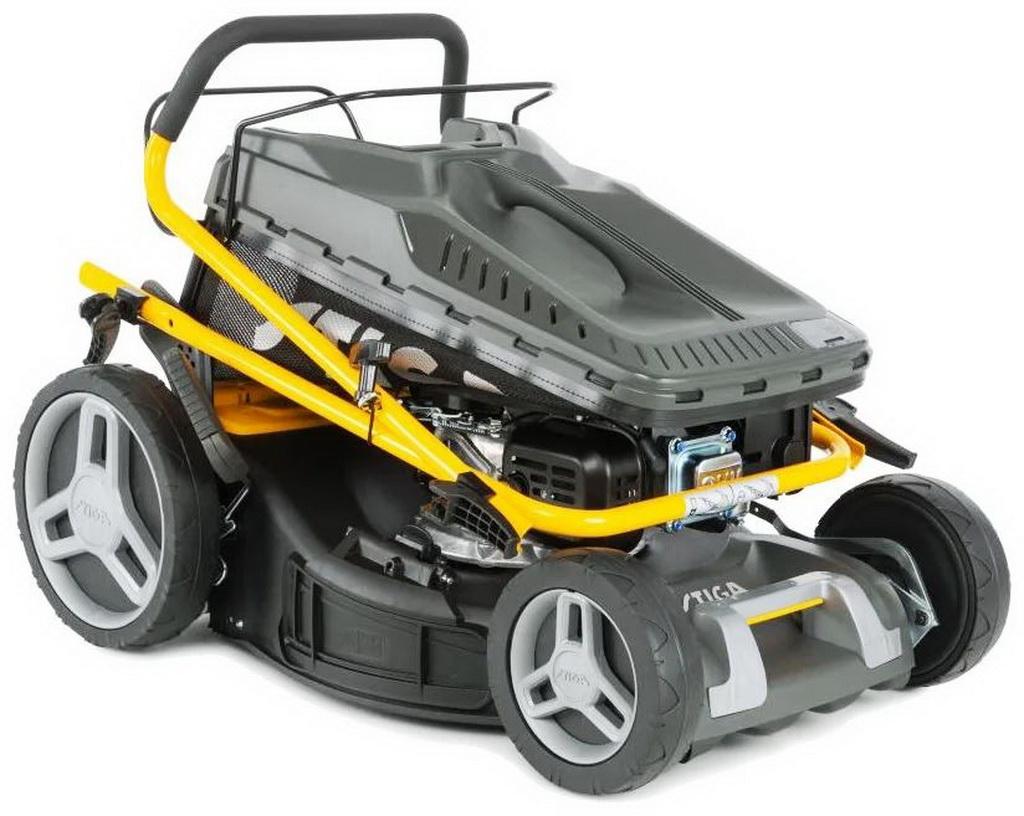 Максимальная ширина стрижки за проход 38 см. Высота обработки находится в пределах 2.5-7.5 см. Для сбора растительности предусмотрен тканевой лоток, он имеет объем 40 л и закрывается крышкой из пластика. В наличии индикатор заполнения. Колеса максимально выведены за пределы конструкции, поэтому работы вы сможете выполнять вдоль оград, стен, в прочих труднодоступных местах. Корпус газонокосилки защищен от влаги и пыли.