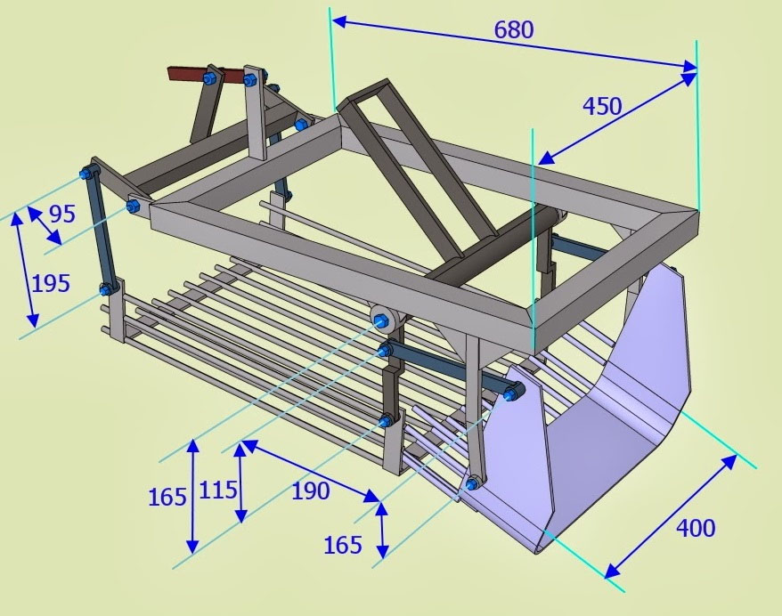 Тяги не относятся к обязательным элементам, но они облегчают использование картофелекопалки для мотоблока на сыром и тяжёлом грунте. Как вариант, регулируемую конструкцию крепят к отдельной раме, а её присоединяют к основной. Крепления затягивают болтами и гайками.
