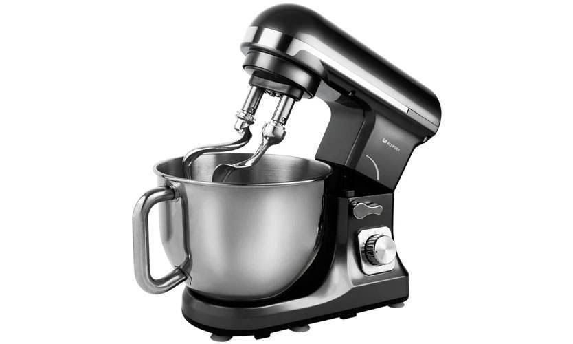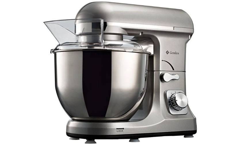 Стационарный миксер с металлическим корпусом и чашкой из нержавейки ёмкостью 4,8 л представлен в широкой цветовом диапазоне. Имеет три основные насадки — крючки для замешивания и венчик. В работе задействует 10 скоростей. Мощность — 800 Вт. В комплекте крышка на чашку.