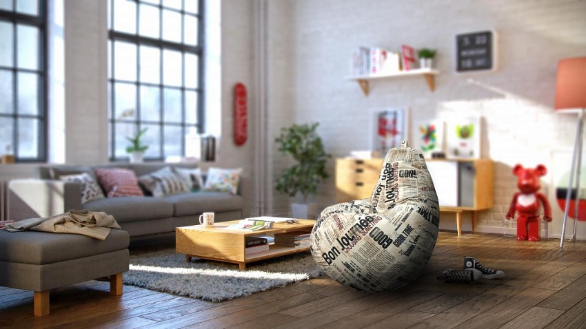 Кресло мешок в интерьере – один из стильных и модных аксессуаров. При помощи бескаркасной мебели можно организовать комфортный уголок для отдыха, работы в гостиной, уютную зону для чтения в спальне, лаунж зону на балконе, террасе.