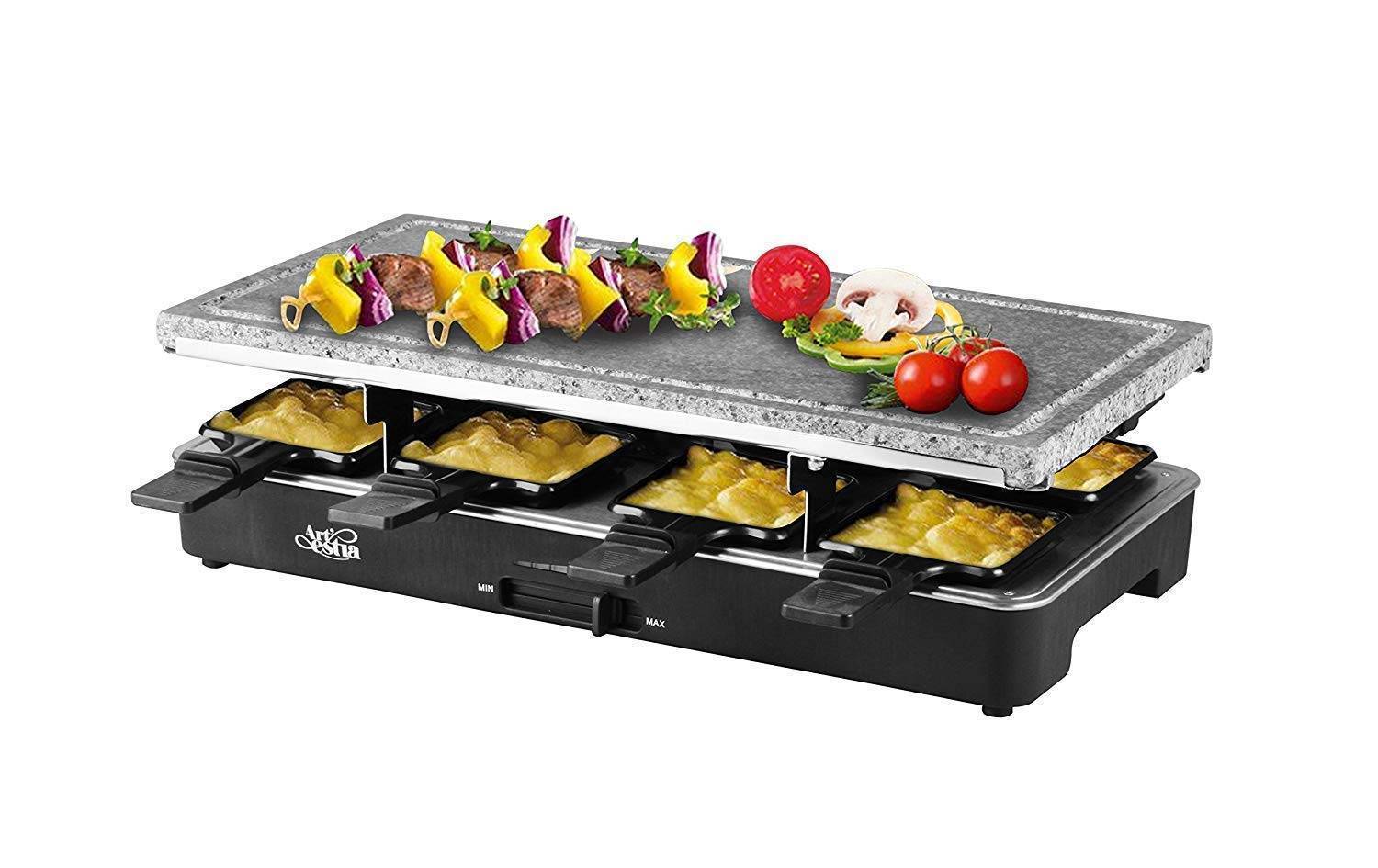 Интересная конструкция у раклетниц — два яруса с разной температурой, первый из которых предназначен для лёгкой жарки, второй хорошо обработает мясные, рыбные, овощные блюда.
