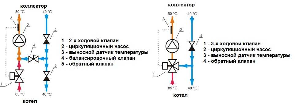 Этот вариант является наиболее оптимальным для получения необходимого режима в системе «тёплый пол». Процедура регулировки температуры очень проста. Необходимо знать текущие показатели входящих потоков теплоносителя, чтобы определить пропорции, только тогда на выходе удастся добиться нужных показателей. Эти устройства при правильном монтаже и регулировке могут работать на разделение потока.
