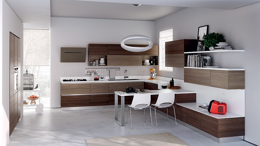 Чаще всего компактные мини-кухни выделяются из общей массы дизайнерских проектов своей эргономичностью и индивидуальностью дизайна и устройства. Обусловлено это использованием для угловых небольших кухонных гарнитуров специальных вращающихся систем для хранения кухонных приспособлений и даже размещения бытовой техники. Подобные нестандартные варианты дверец и шкафчиков позволяют сделать угловую кухню более вместительной, а значит, комфортной в эксплуатации. Как правило, производители современной мебели предлагают массу полезных модулей именно для маленьких угловых кухонь, например, популярные стеллажи-карусели либо подвесные полки.