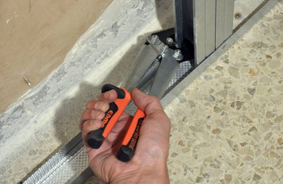- Ножницами по металлу разрезают концы профиля по ребрам.