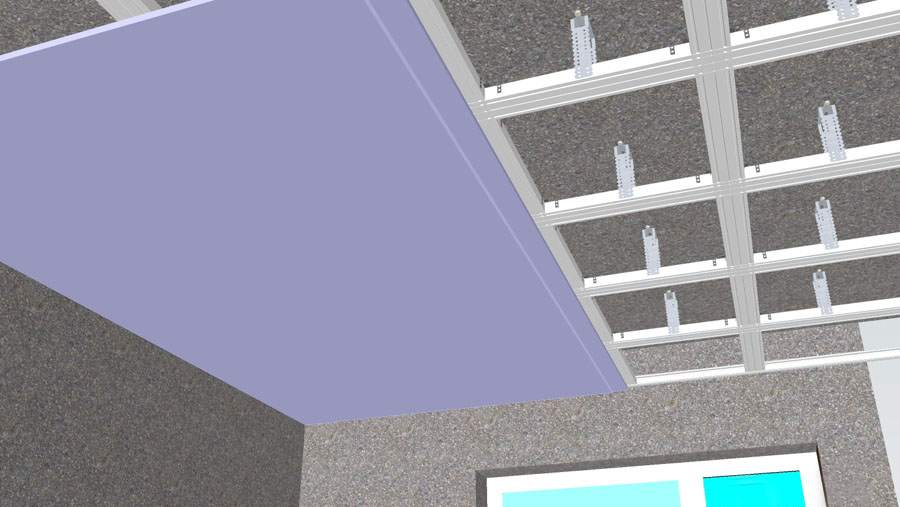 Преимущество применения этого материала заключается в его малом весе, простоте обработки и наличию различных соединителей. Определившись с конфигурацией будущего покрытия (одноуровневый или двухуровневый потолок из гипсокартона ), подготавливают необходимое количество соединителей каждого вида (прямых, угловых, крабов, Т-образных, двухуровневых), используемых подвесов (прямых или анкер-подвесов). Исходя из, габаритов комнаты и дизайна нарезают необходимой длины элементы будущей конструкции из профиля: