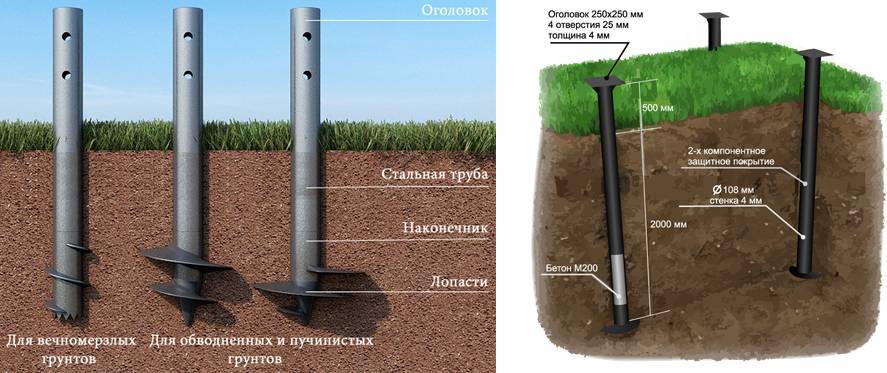 - В условиях нестабильной почвы. Винты проникают сквозь вспученный и рыхлый слой и опираются в самый прочный слой. Нижние элементы конструкции проходят все препятствия и попадают вниз. Лопасти защищают от давления грунта.
