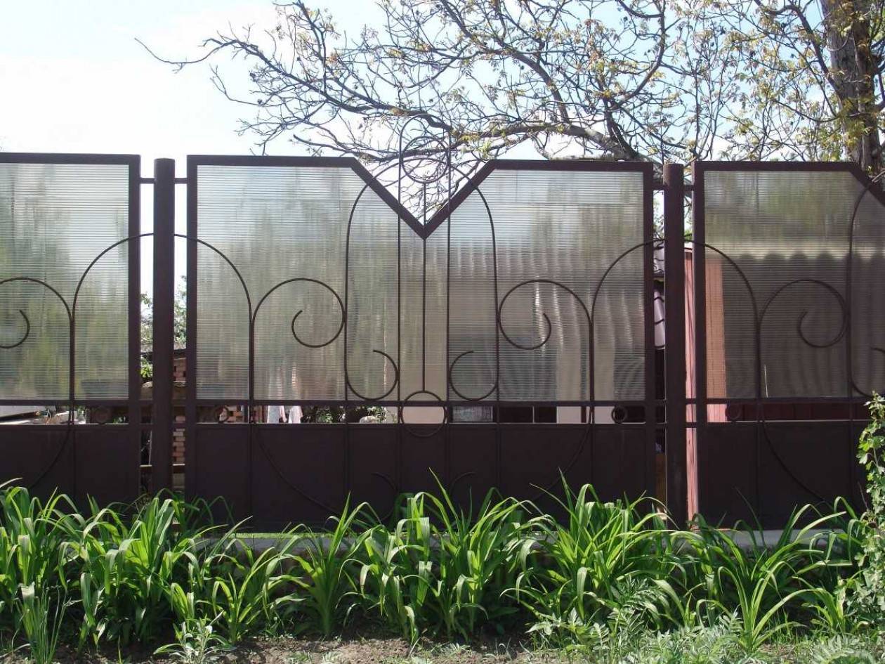 Прогоны между опорами обычно делают 1,5 или 2 метра. К стойкам приваривают хомуты из круглой стали с резьбовыми окончаниями. Концы хомутов продевают в отверстия листового материала (профнастила, шифера, поликарбоната). На резьбу навинчивают оцинкованные гайки, предварительно одевают на них резиновые и металлические шайбы. Существуют и другие способы крепления листов ограждения.