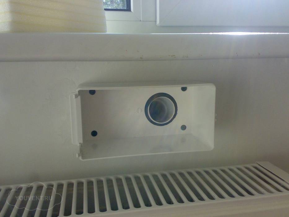 - Во время бурения отверстия следует открыть окно, что позволит образовавшейся пыли свободно выходить наружу, а не втягиваться внутрь помещения новообразованным приточным клапаном. Снаружи труба комплектуется решёткой для защиты от возможного попадания внутрь крупного сора. Также следует учесть, что бурение должно осуществляться под наклоном вниз во избежание попадания влаги в отверстие осадков.